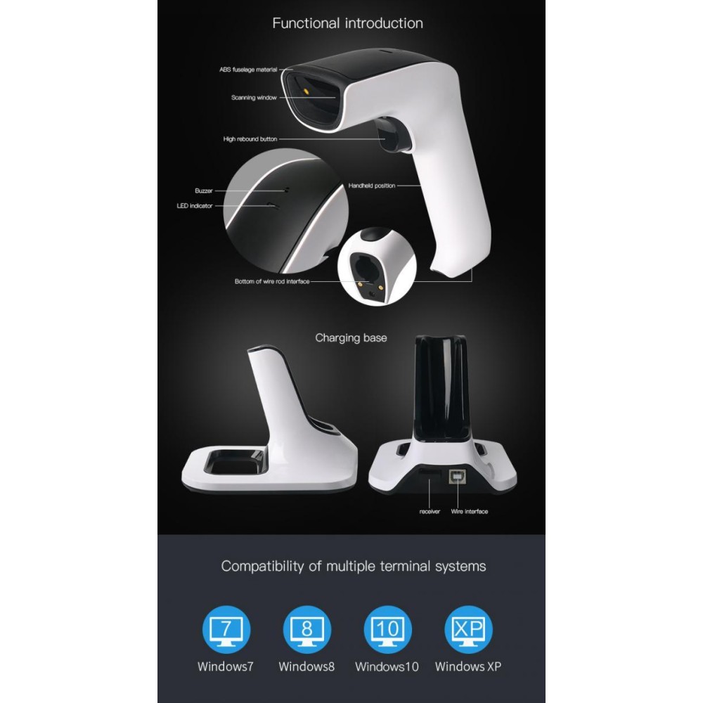 NG Ασύρματο 2D Barcode Scanner με Βάση Φόρτισης / 2.4G / USB / Bluetooth