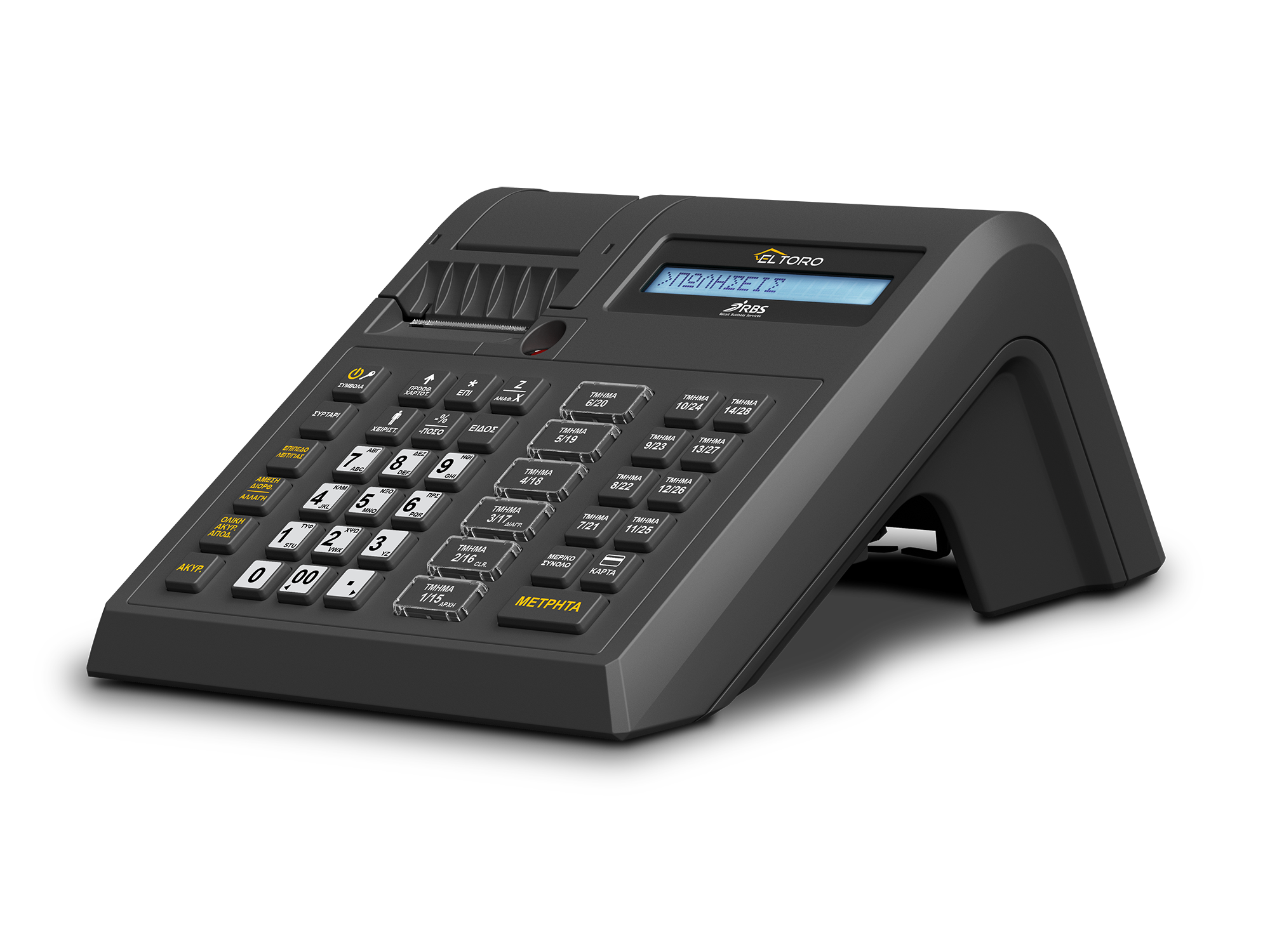 Η EL TORO CR βρίσκεται εδώ, με την παραδοσιακή αισθητική της και το ευκρινές & μεγάλο πληκτρολόγιο. Διαθέτει στιβαρή κατασκευή, έως 11 τμήματα σε 1ο επίπεδο και έως 22 τμήματα σε 2ο, ενώ μπορεί να εκτυπώσει χαρακτήρες μεγαλύτερου μεγέθους (διπλού ύψους και πάχους), με παράλληλη ρύθμιση της έντασης του μαύρου χρώματος στην εκτύπωση. Με 2 LCD οθόνες (πελάτη & χρήστη) υψηλής ευκρίνειας και με δυνατότητα πλήρους διαχείρισης έως 300 πελάτες, έως 10 χειριστές με χρήση κωδικού και έως 20.000 είδη με barcode, αποτελεί την ιδανικότερη επιλογή για παραδοσιακούς χρήστες. Αρ. Έγκρισης 15DNB 663/25-01-24